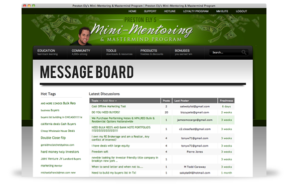Here is a snapshot of the forum where you can come together whenever you like with all the other V.I.P. members to help each other out, encourage each other, share ideas, and mastermind to your hearts content. There's alot of smart people here that seriously do your bank account good: